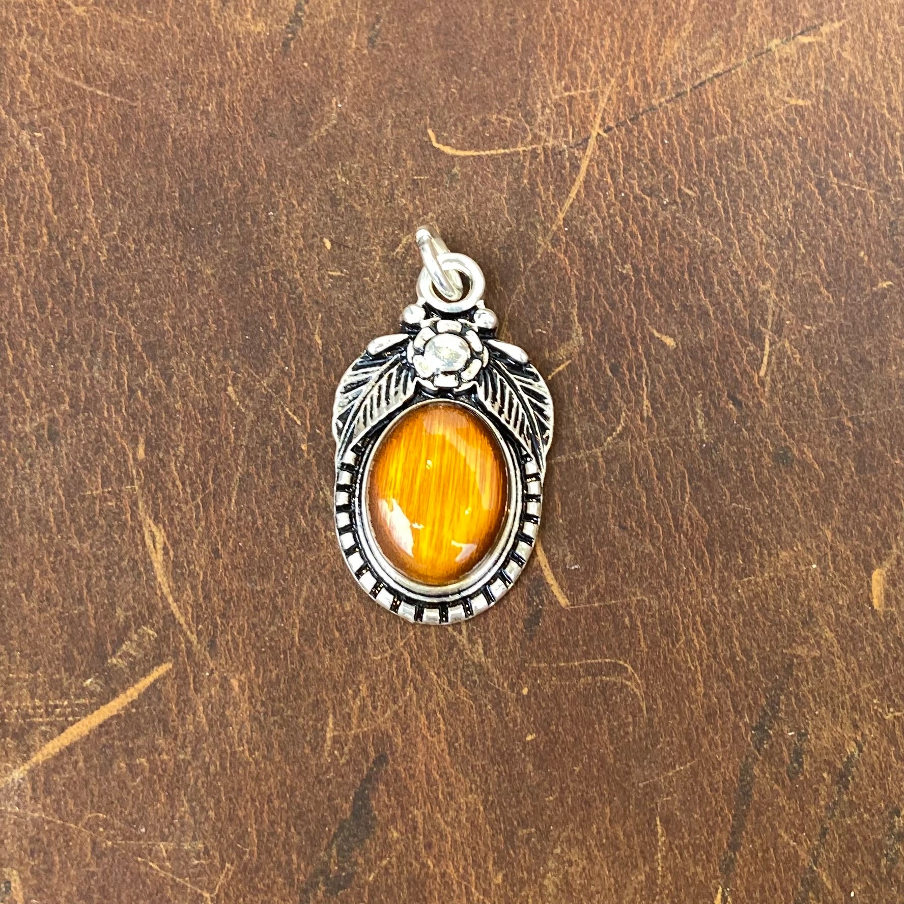 Ein schöner Anhänger mit speziellem Schmuckstein. Masse 45x25mm versilbert.