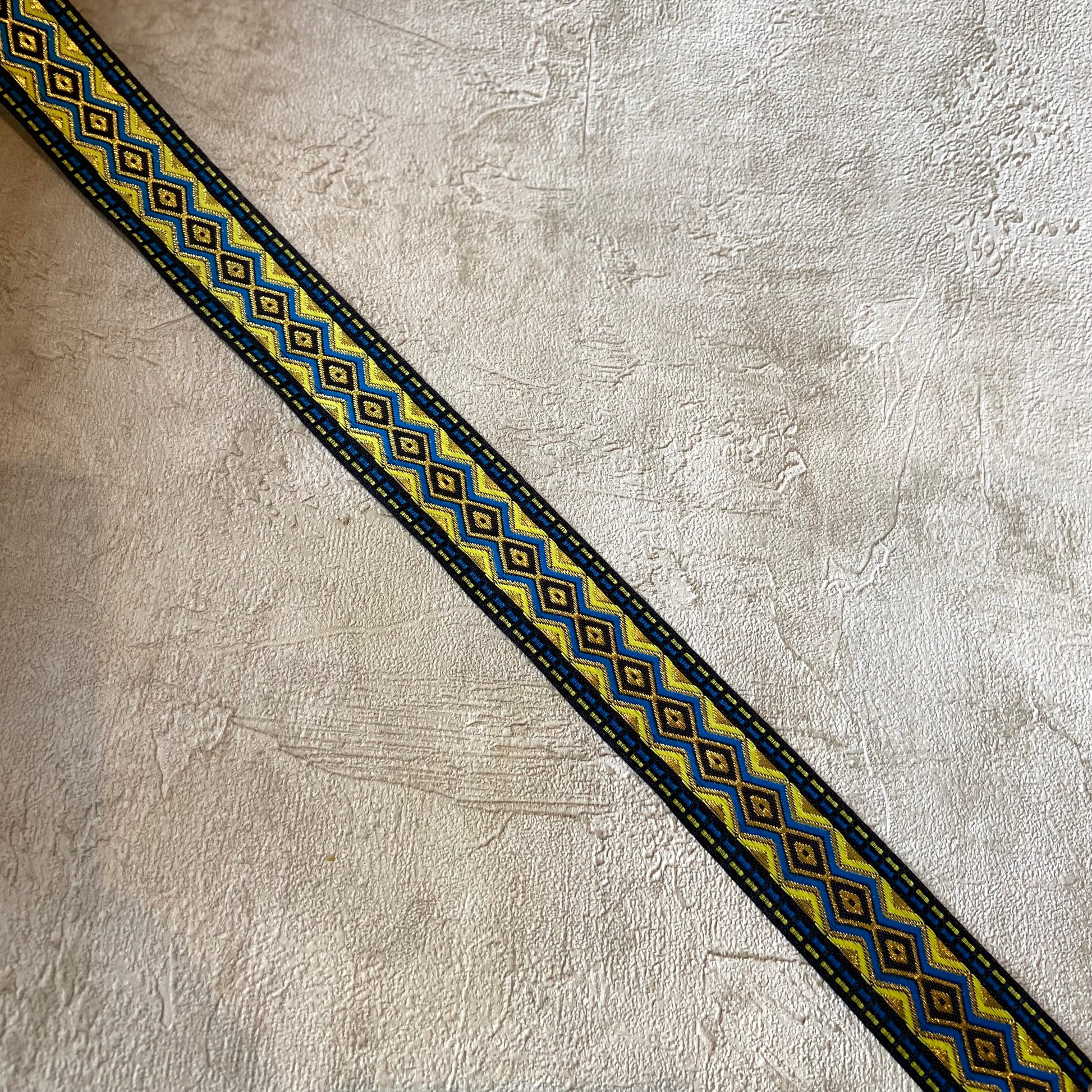 Muster mit neongrün, blau und gold. Breite: 35mm. Preis pro Meter.