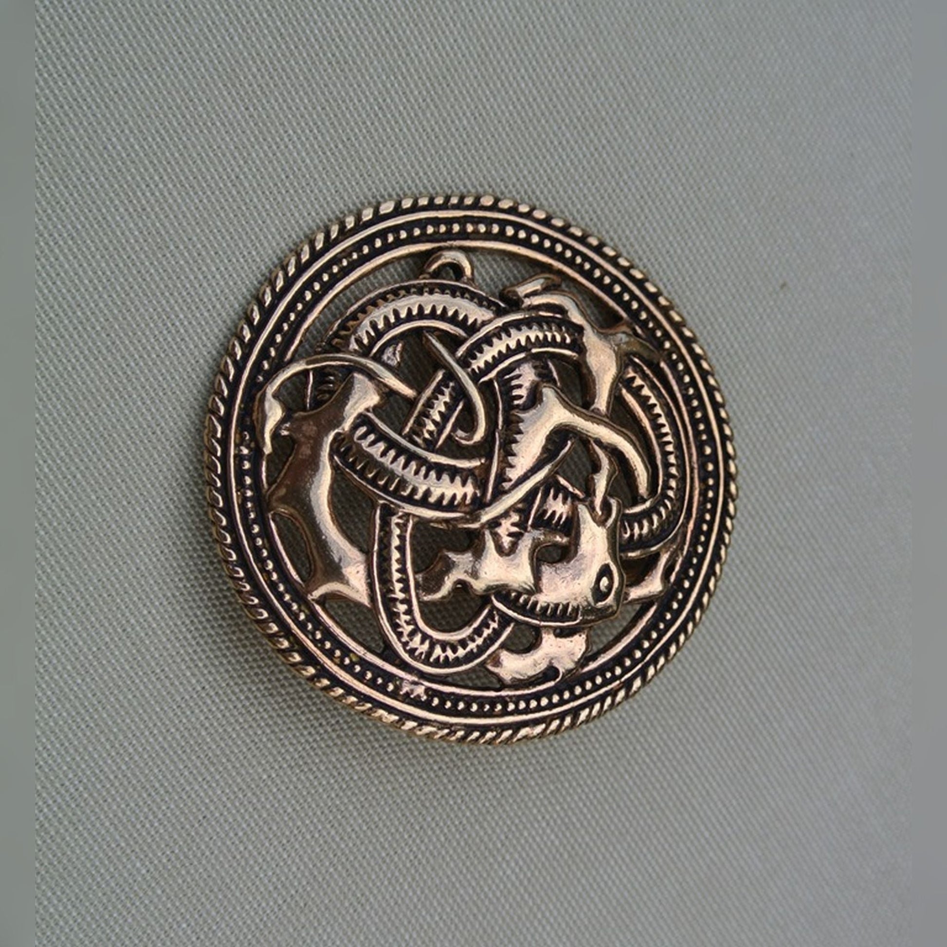 Brosche mit Drachensymbol keltisch in Bronze. Durchmesser: 50mm