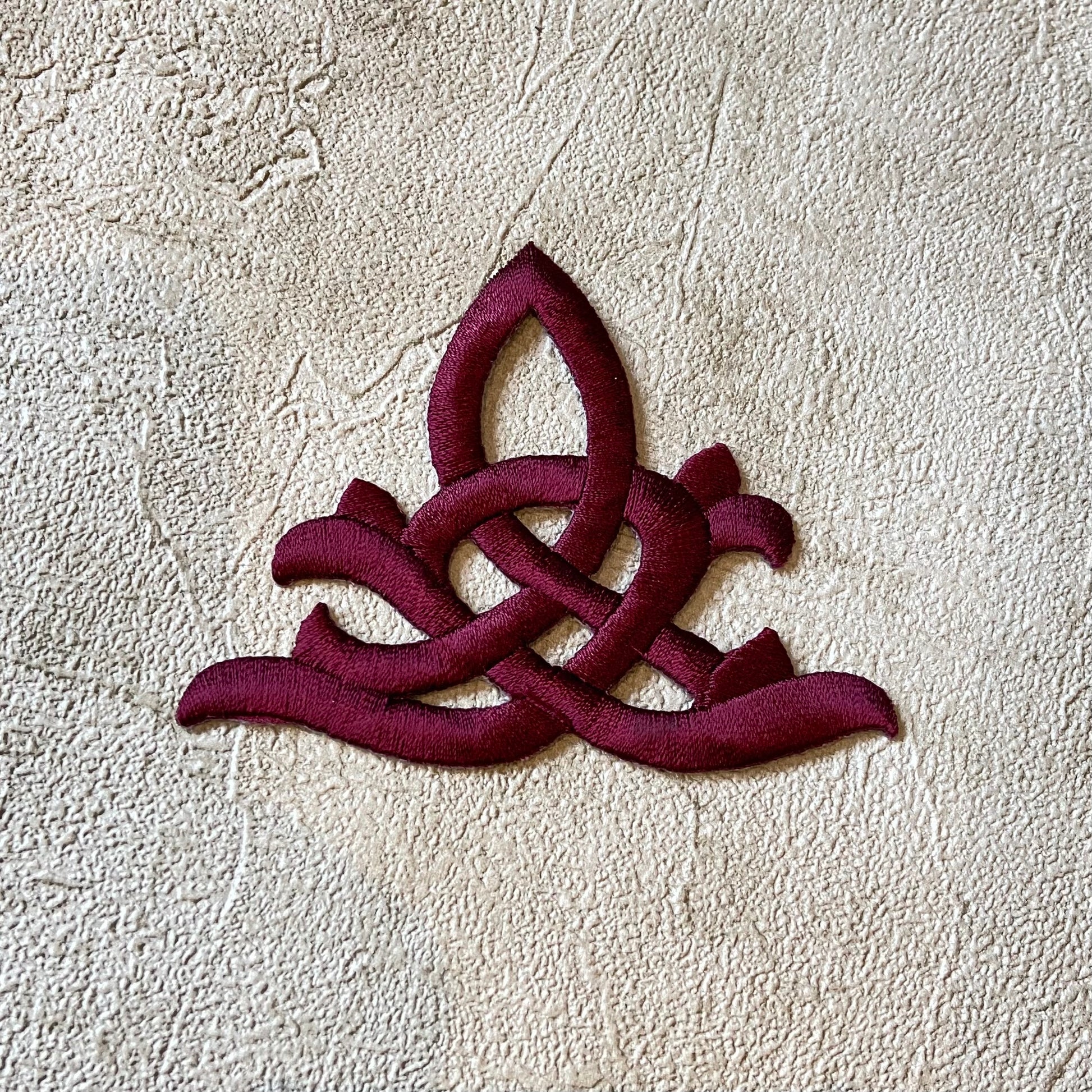 Applikation wie Wasser oder Fisch in Bordeaux. Es gibt auch noch andere Farben wie gold, silber, grün und blau. Wir haben nur Bordeaux an Lager. Muster. Masse 85x65mm. Bitte Anfragen für andere Farben.