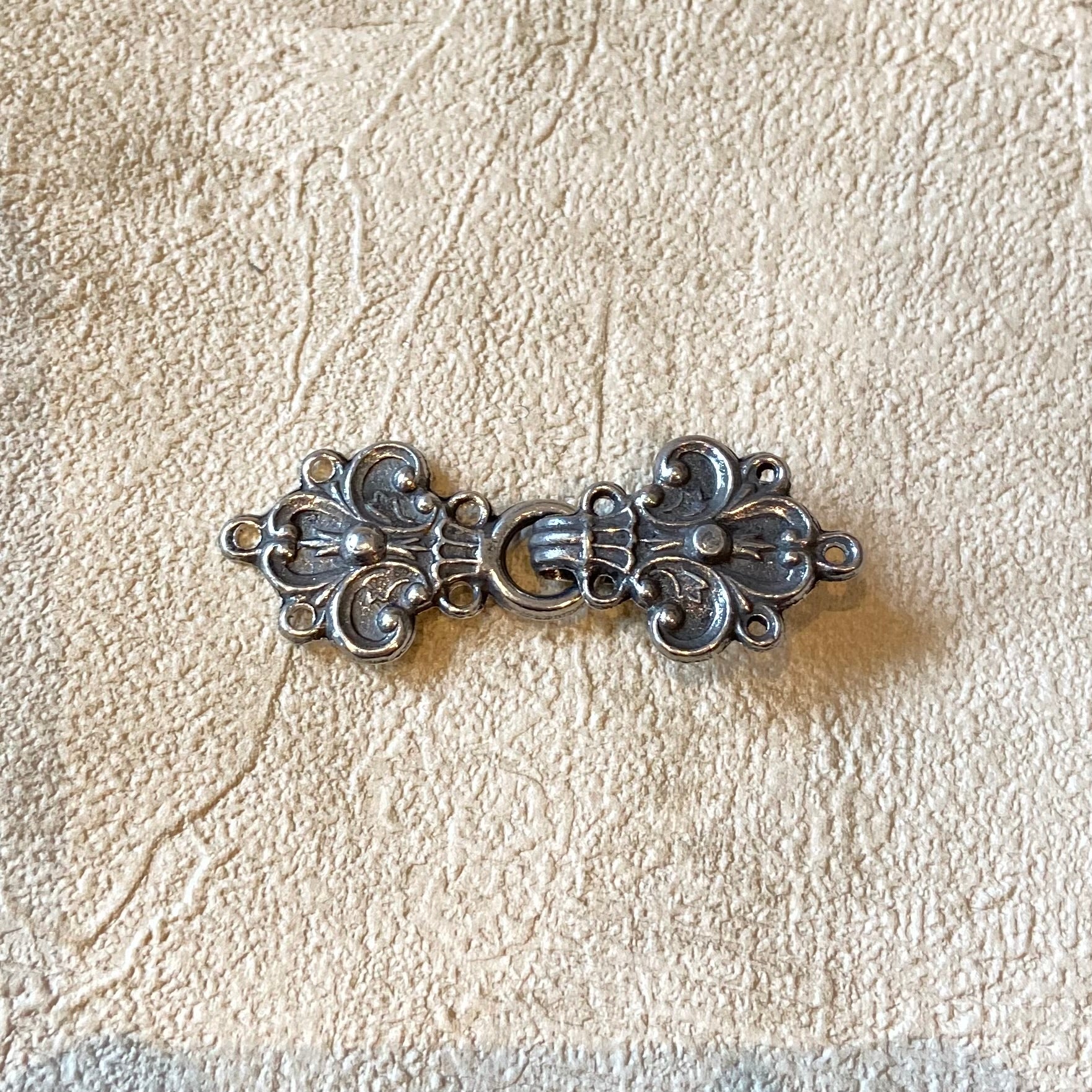 Auch hier ein Verschluss aus dem hohen Norden. Eignet sich sehr gut an feine leichte Gewänder, da er sehr klein ist. Aus Zinn gemacht. Masse: 55x18mm