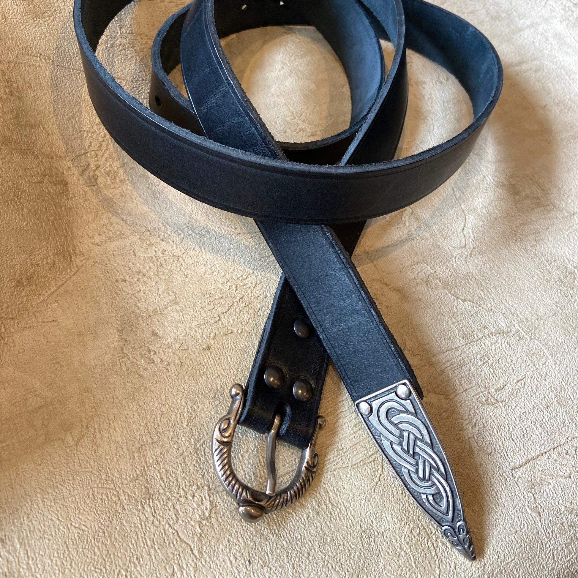 Gürtel in schwarzem Leder Breite: 3cm mit Riemenende Keltischer Knoten in silberoptik.