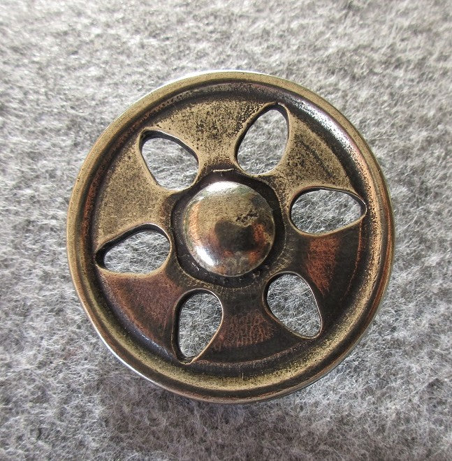 Diese Zierniete wird mit Nietkappen geliefert, welche man einpressen kann. Durchmesser: 46mm.